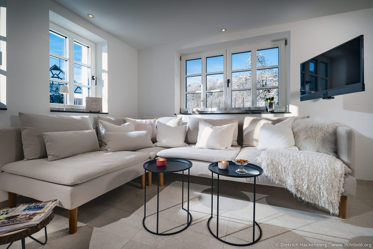 Maisonette im Obstgarten —ein Ferienhaus im sauerländischen Benolpe. Innen und Außen fotografiert für die Verwendung auf Buchungsportalen.